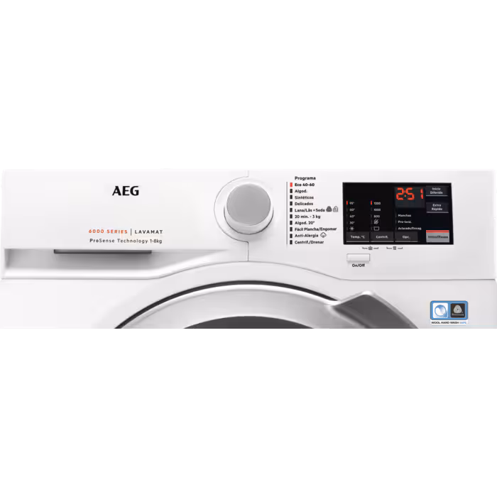 3 kg en 20 minutos, Vapor antialergias, Algodón 20º, Algodón , Delicados, Plancha fácil, Eco a 40°-60°, Centrifugado/Drenaje, Sintéticos, Lana\Seda
