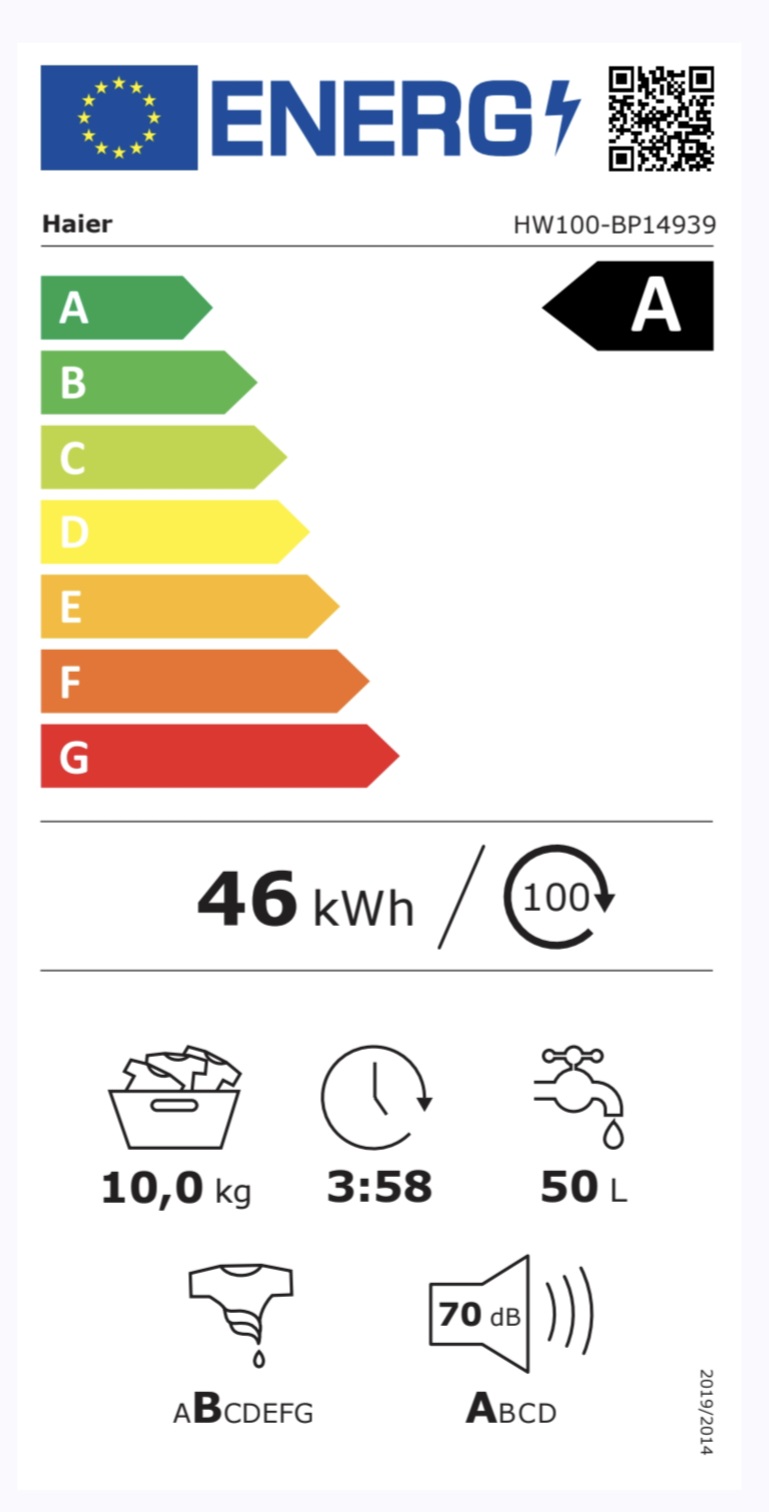 Escoger una lavadora Haier Clase A significa un ahorro de energía, disponer de un electrodoméstico más eficiente y prestar un mayor respeto por el medio ambiente. Representa, hasta un -51% de consumo en comparación con un modelo Clase G.