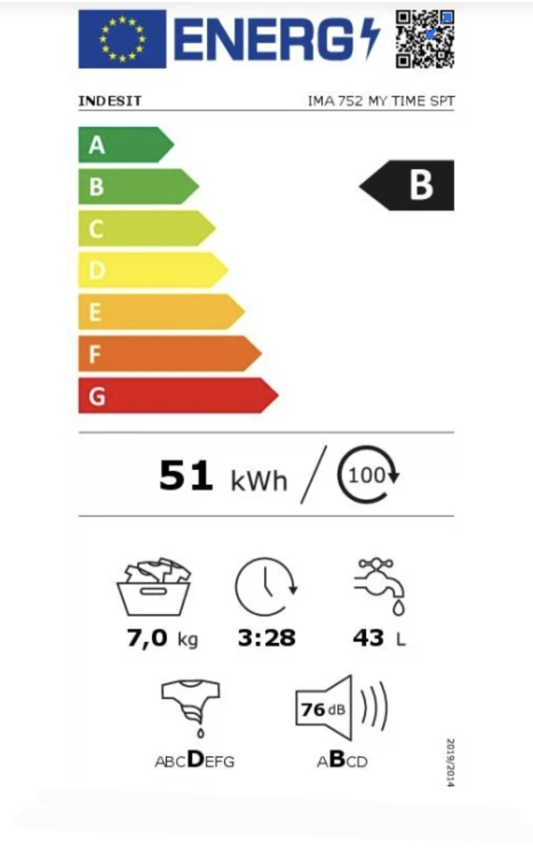 LAVADORA INDESIT 7 KGS 1200 RPM INVERTER CLASE B IM762MY TIME SPT BLANCO