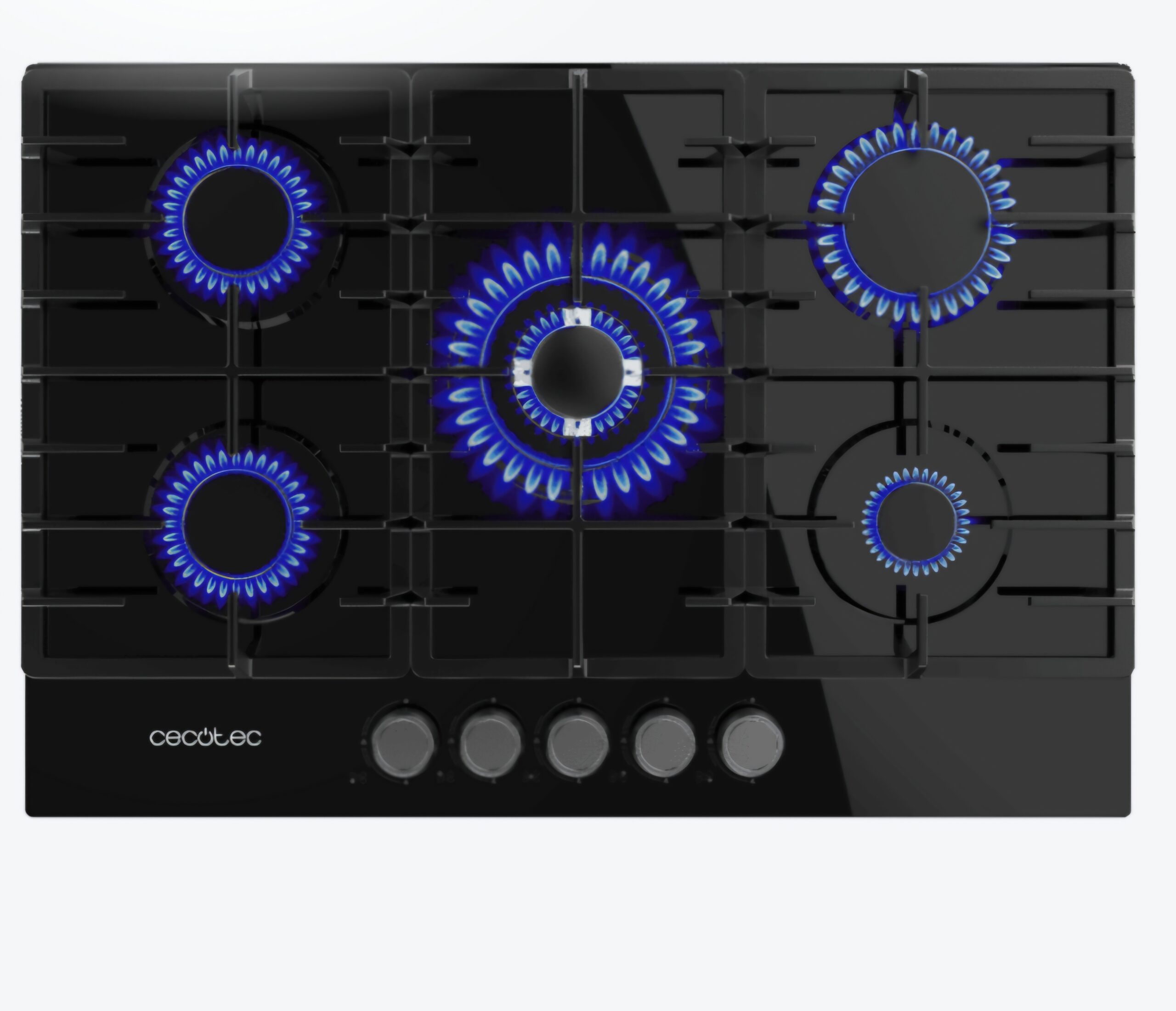5 Fuegos, acabado en cristal con parrillas completas de hierro fundido. Los acabados de alta calidad hacen que el rendimiento y la durabilidad de estas parrillas resisten cualquier tipo de cocinado.